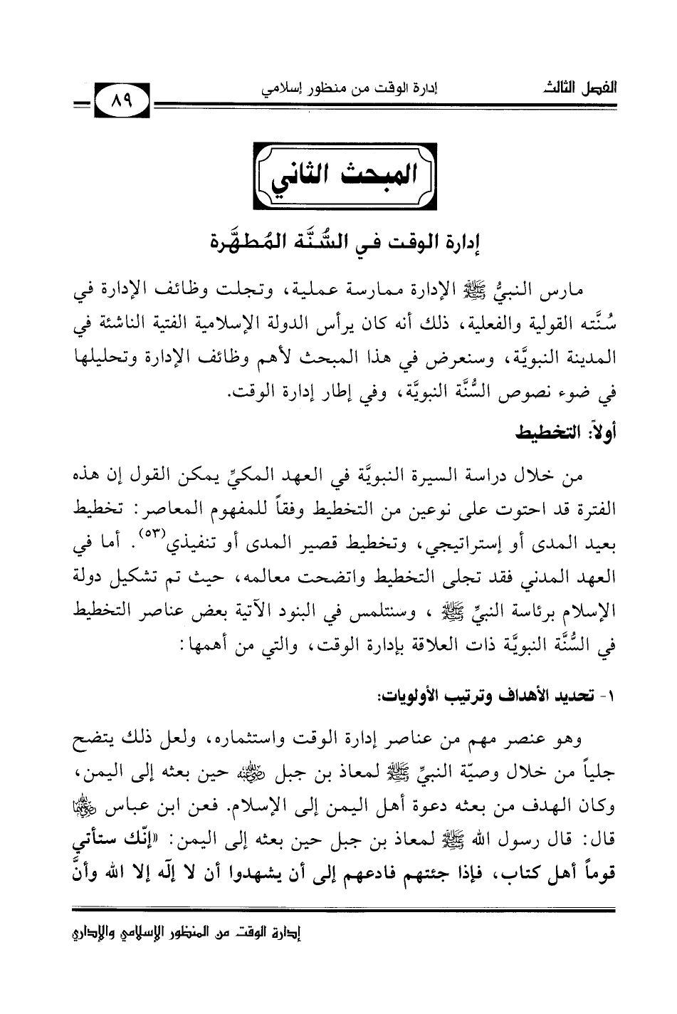 والنبيُّ صلى الله عليه وسلم قد ربّى أمته على ذلك، إذ علّمهم أن تحقيق الهدف مرهون بأمرين: أولهما فعل السبب الملائم، وثانيهما توفيق الله عزَّ وجلَّ. لذا عندما سأل رجلٌ النبيَّ صلى الله عليه وسلم في شأن الناقة أيُطلِقها ويتوكل على الله في حفظها وعدم ضياعها أم يعقلها ويتوكل على الله بعد عقلها؟ قال له النبيُّ صلى الله عليه وسلم حينئذٍ: «اعقلها وتوكل» (¬2) . وهذا توجيه من النبيِّ صلى الله عليه وسلم للرجل بفعل السبب الملائم لحفظ الناقة من أن تتفلت، وهو القيام بعقلها وشدِّ وَثاقها ثم التوكل بعدها على الله في حفظها.