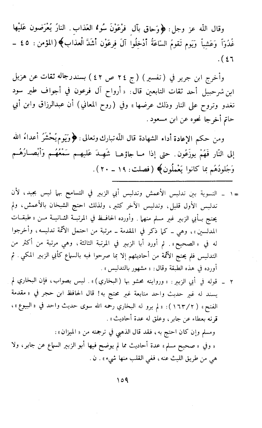= 1 - التسوية بين تدليس الأعمش وتدليس أبي الزبير في التسامح بهما ليس بجيد، لأن تدليس الأول قليل، وتدليس الآخر كثير، ولذلك أحتج الشيخان بالأعمش، ولم يحتج بأبي الزبير غير مسلم منهما، أو رده الحافظ في المرتبة الثانية من «طبقات المدلسين» ، وهي - كما ذكر في المقدمة - مرتبة من احتمل الأئمة تدليسه، وأخرجوا له في «الصحيح» . ثم أو رد أبي الزبير في المرتبة الثالثة، وهي مرتبة من أكثر من التدليس فلم يحتج الأئمة من أحاديثهم إلا بما صرحوا فيه بالسماع كأبي الزبير الملكي. ثم أو رد في هذه الطبقة وقال: «مشهور بالتدليس» .