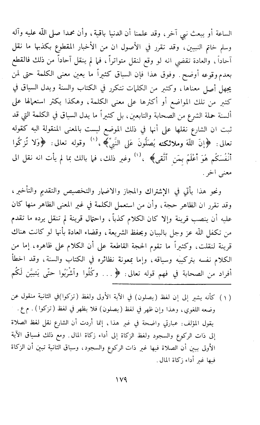 (1) كأنه يشير إلى أن لفظ (يصلون) في الآية الأولى ولفظ (تزكوا) في الثانية منقول عن وضعه اللغوي، وهذا وإن ظهر في لفظ (يصلون) فلا يظهر في لفظ (تزكوا) . م ع