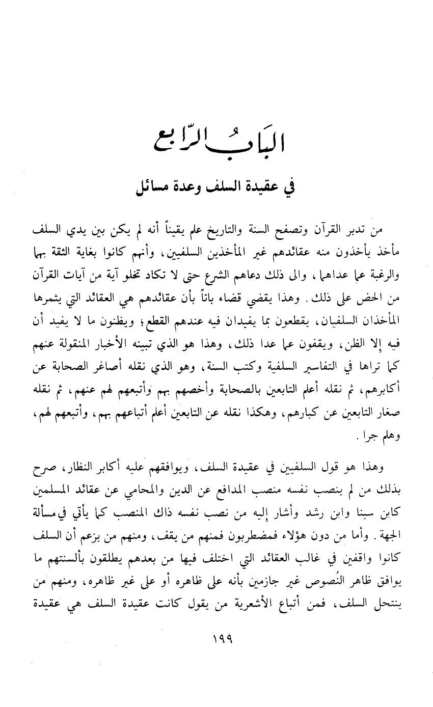 الباب الرابع: في عقيد السلف وعدة مسائل