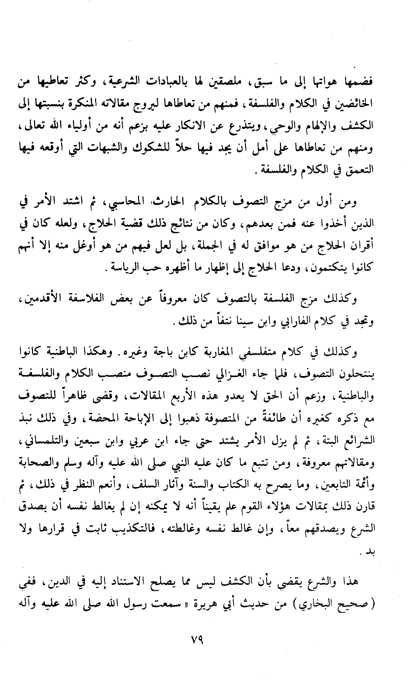 فضمها هواتها إلى ما سبق، ملصقين لها بالعبادات الشرعية، تعاطيها من الخائضين في الكلام والفلسفة، فمنهم من تعاطاها ليروج مقالاته المنكرة بنسبتها إلى الكشف والإلهام الروحي، ويتدرع عن الإنكار عليه بزعم أنه من أولياء الله تعالى، ومنهم من تعاطاها على أمل أن يجد فيها حلاً للشكوك والشبهات التي أو قعه فيها التعمق في الكلام والفلسفة.
