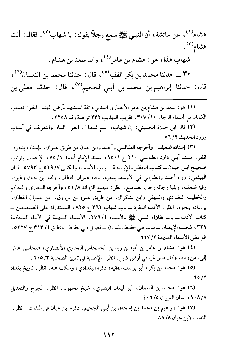 30- حدثنا محمد بن بكر الفقيه، قال: حدثنا محمد بن النعمان، قال: حدثنا إبراهيم بن محمد بن أبي الجحيم، قال: حدثنا معلى بن -[113]- أسد، قال: حدثنا عبد العزيز بن المختار، عن علي بن زيد، عن الحسن، عن هشام بن عامر، قال: أتيت النبي صلى الله عليه وسلم، فقال لي: ما اسمك؟ قلت: شهاب. قال: بل أنت هشام، قلت: شهاب. قال: بل أنت هشام.