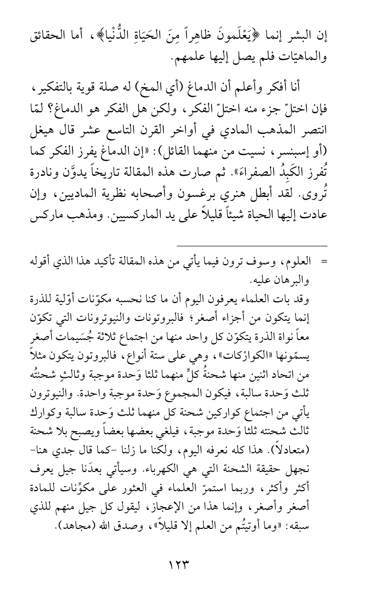 = العلوم، وسوف ترون فيما يأتي من هذه المقالة تأكيد هذا الذي أقوله والبرهان عليه.