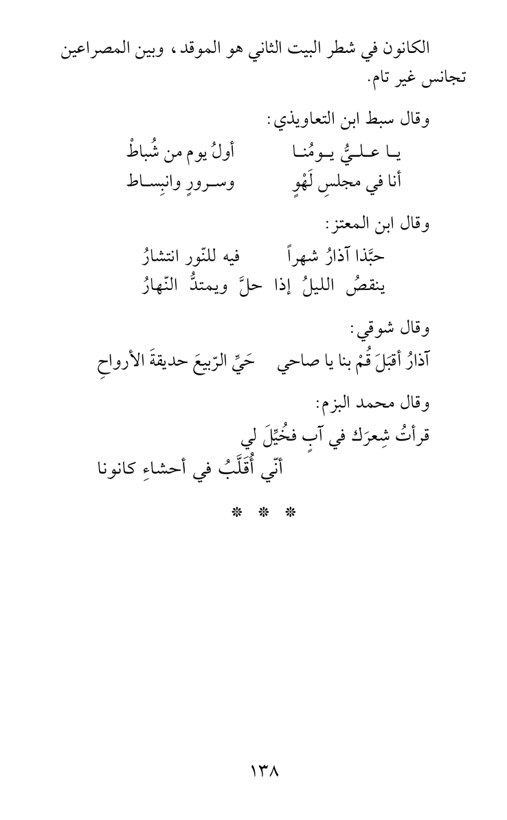 قرأتُ شِعرَك في آبٍ فخُيِّلَ لي ... أنّي أُقَلَّبُ في أحشاءِ كانونا