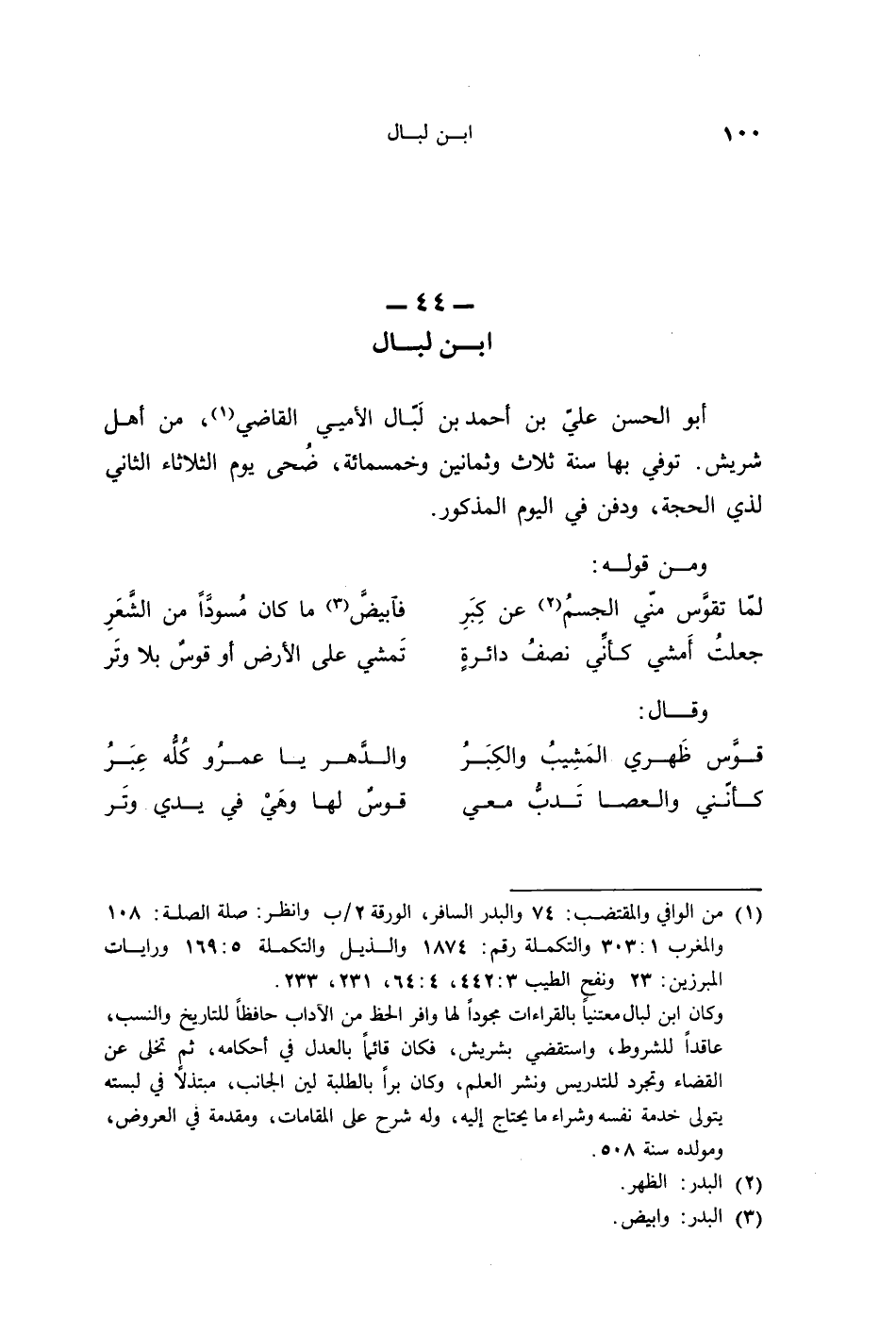 أبو الحسن عليّ بن أحمد بن لَبَّال الأميي القاضي، من أهل شريش. توفي بها سنة ثلاث وثمانين وخمسمائة، ضُحى يوم الثلاثاء الثاني لذي الحجة، ودفن في اليوم المذكور.