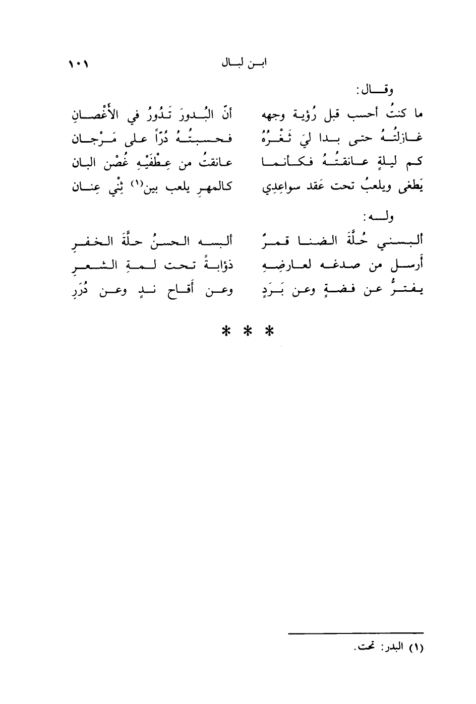 كم ليلةٍ عانقتُهُ فكأنَّما ... عانقتُ من عِطْفَيْهِ غُصْن البانِ