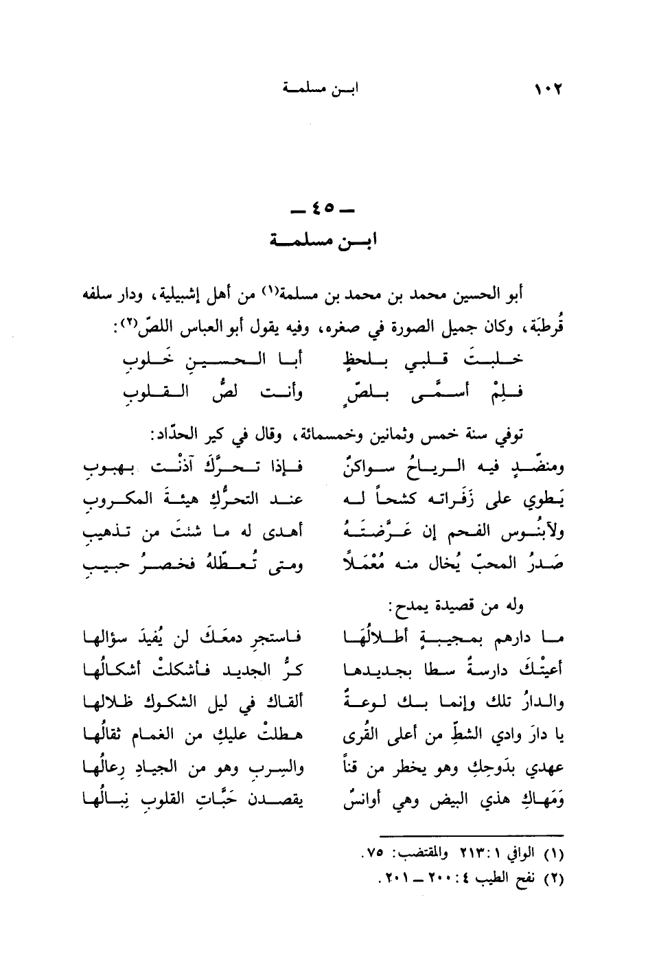 أبو الحسين محمد بن محمد بن مسلمة من أهل إشبيلية، ودار سلفه قُرْطُبَة، وكانَ جميل الصورة في صغره، وفيه يقول أبو العباس اللصّ: