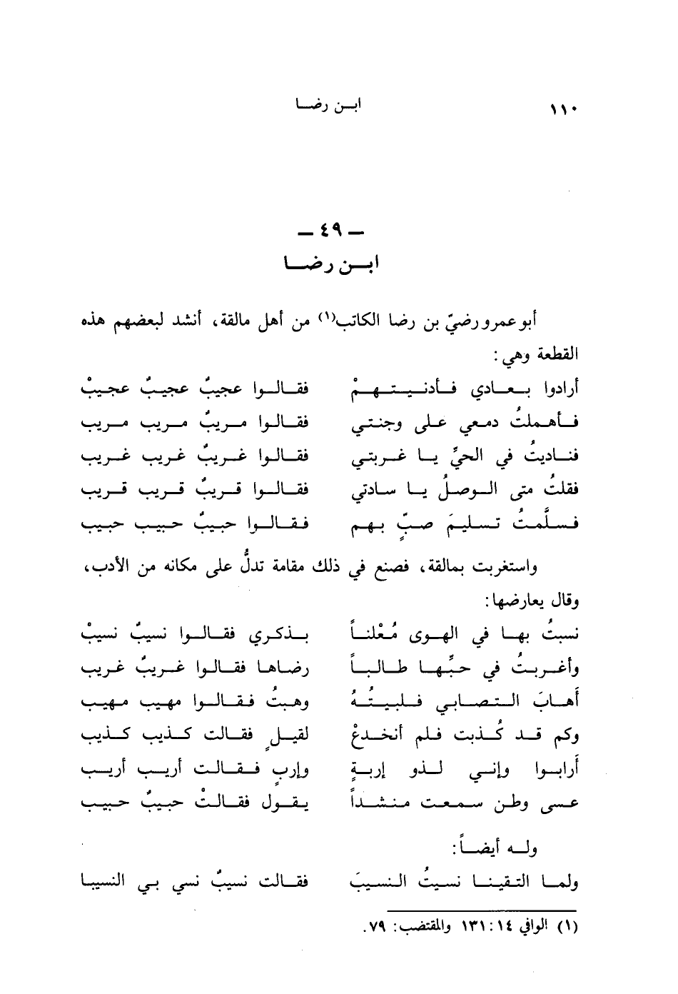 فسلَّمتُ تسليمَ صبٍّ بهم ... فقالوا حبيبٌ حبيب حبيبْ