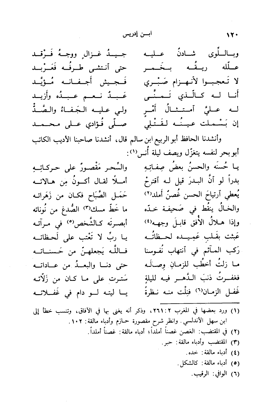 وأنشدنا الحافظ أبو الربيع ابن سالم قال: أنشدنا صاحبنا الأديب الكاتب أبو بحر لنفسه يتغزَّل ويصف ليلة أنس: