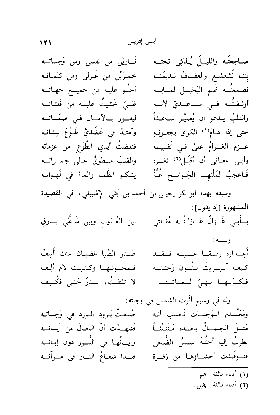 وسبقه بهذا أبو بكر يحيى بن أحمد بن بَقي الإشبيلي، في القصيدة المشهورة إذ يقول: