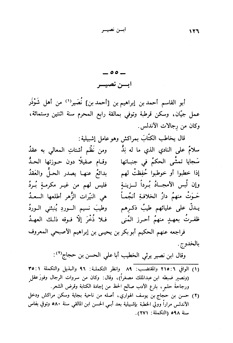وقال ابن نصير يرثي الخطيب أبا علي الحسن بن حجاج: