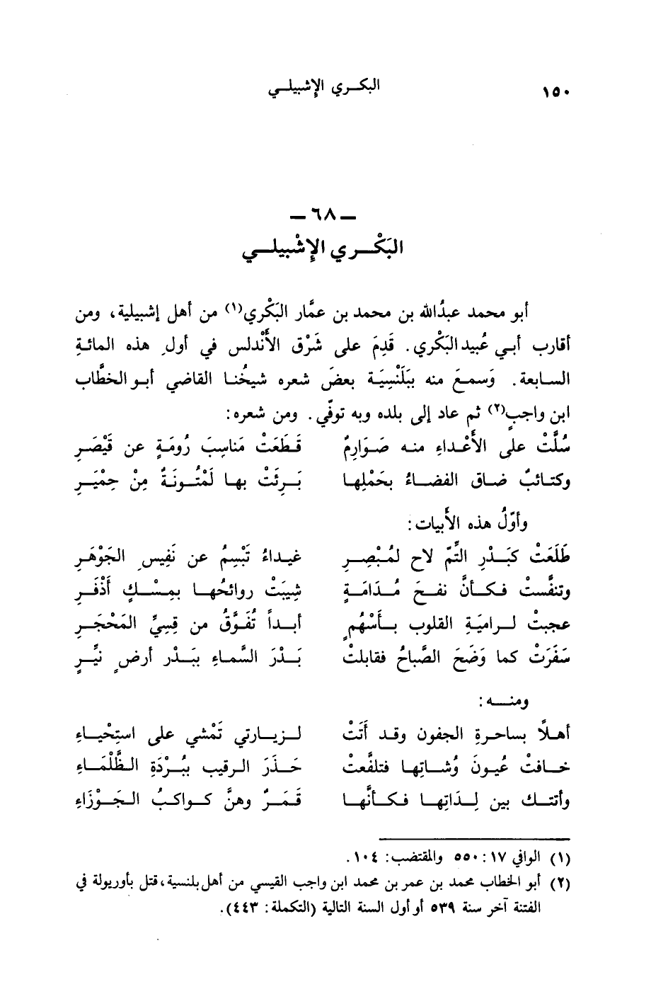 أبو محمد عبد الله بن محمد بن عمَّار البكري من أهل إشبيلية، ومن أقارب أبي عبيد البكري. قدم على شرق الأندلس في أول هذه المائة السابعة. وسمع منه ببلنسية بعضَ شعره شيخنا القاضي أبو الخطاب ابن واجب ثمَّ عاد إلى بلده وبه توفي. ومن شعره: