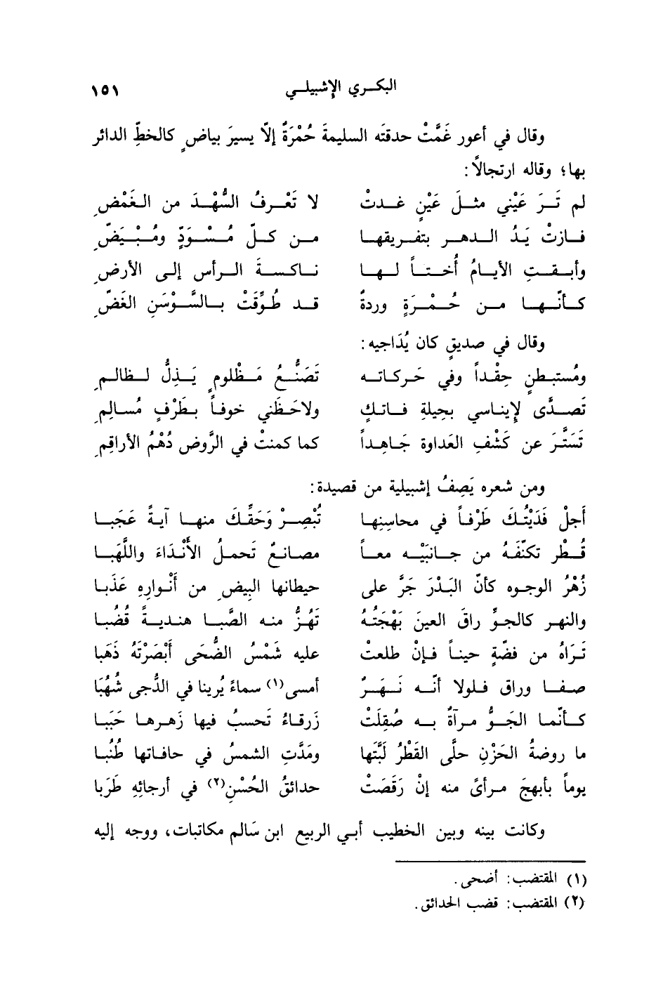 زُهرُ الوجوه كأنَّ البدرَ جرَّ على ... حيطانها البيضِ من أنوارِهِ عَذَبا