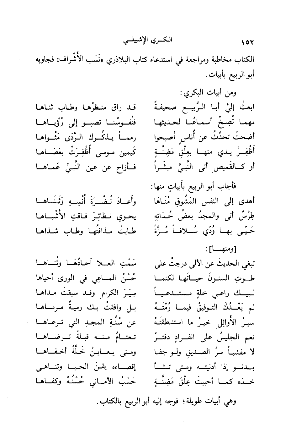 الكتاب مخاطبة ومراجعة في استدعاء كتاب البلاذري " نسب الأشراف " فجاوبه أبو الربيع بأبيات.