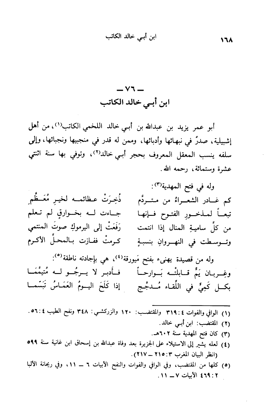 أبو عمر يزيد بن عبد الله بن أبي خالد اللخمي الكاتب، من أهل إشبيلية، صدرٌ في نبهائها وأدبائها، وممن له قدر في منجبيها ونجبائها، وإلى سلفه ينسب المعقل المعروف بحجر أبي خالد، وتوفي بها سنة اثنتي عشرة وستمائة، رحمه الله.