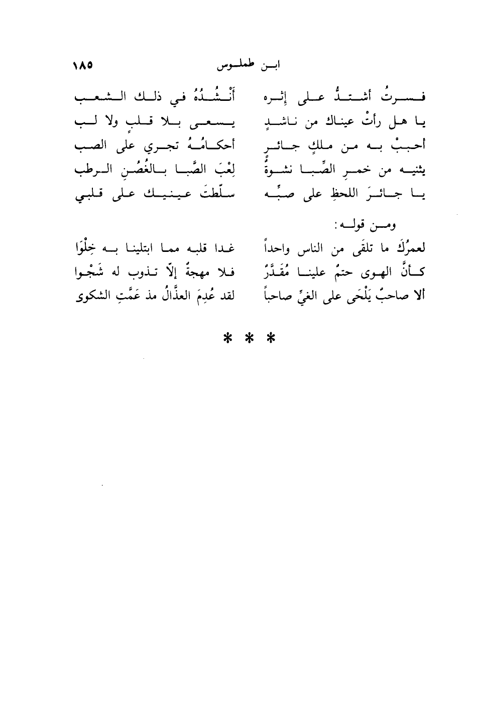 أحببْ به من ملكٍ جائرٍ ... أحكامهُ تجري على الصب