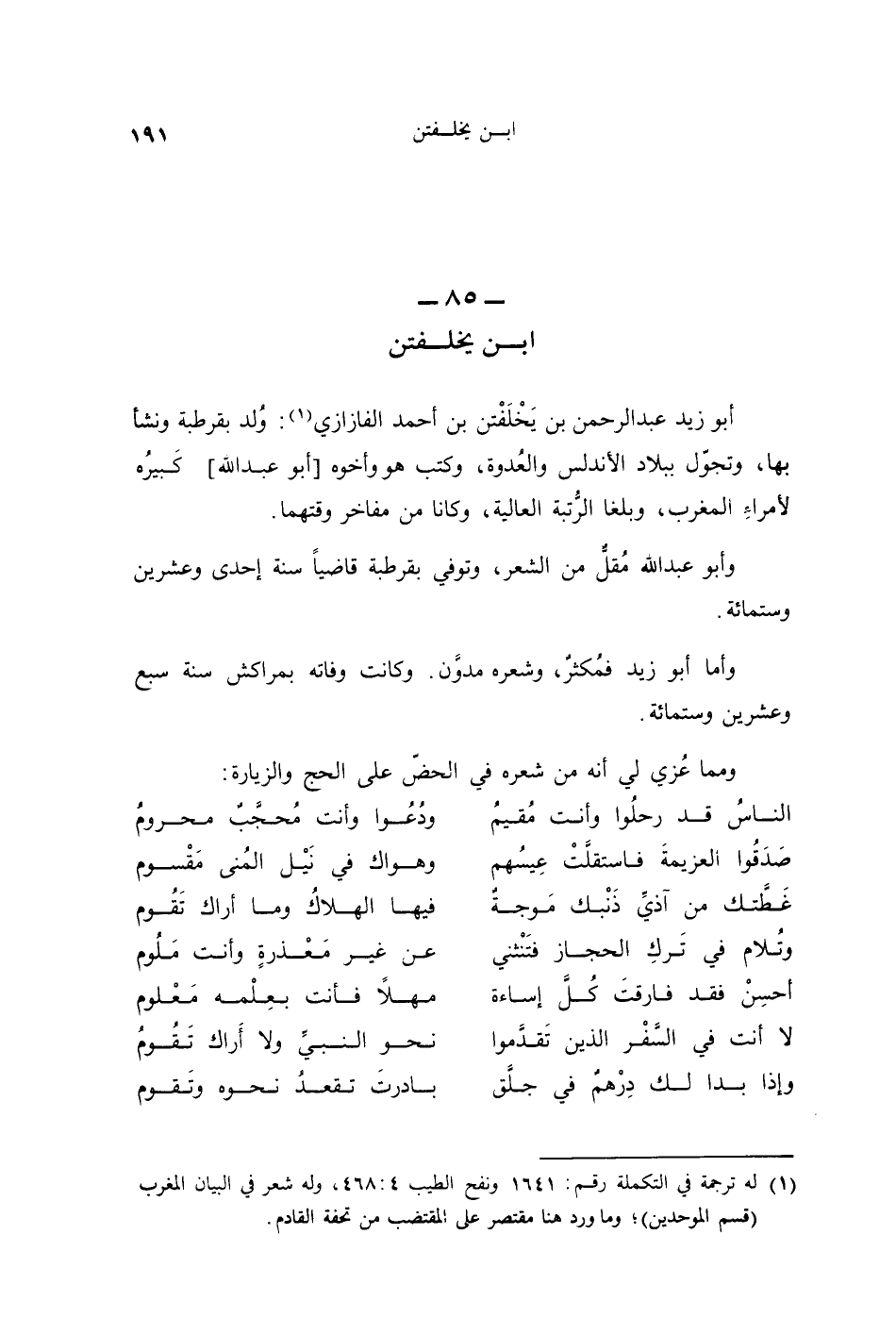 أبو زيد عبد الرحمن بن يَخْلَفْتن بن أحمد الفازازي: ولد بقُرْطُبَة ونشأ بها، وتجوّل ببلاد الأندلس والعُدوة، وكتب هو وأخوه أبو عبد الله كبيره لأمراء المغرب، وبلغا الرُّتبة العالية، وكانا من مفاخر وقتهما.