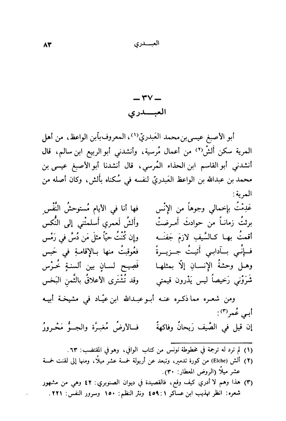 أبو الأصبغ عيسى بن محمد العَبدريّ، المعروف بابن الواعظ، من أهل المرية سكن أَلشْ من أعمال مُرسية، وأنشدني أبو الربيع ابن سالم، قال: أنشدني أبو القاسم ابن الحذاء المُرسي، قال: أنشدنا أبو الأصبغ عيسى بن محمد بن عبد الله بن الواعظ العَبدريّ لنفسه في سُكناه بأَلش، وكان أصله من المرية: