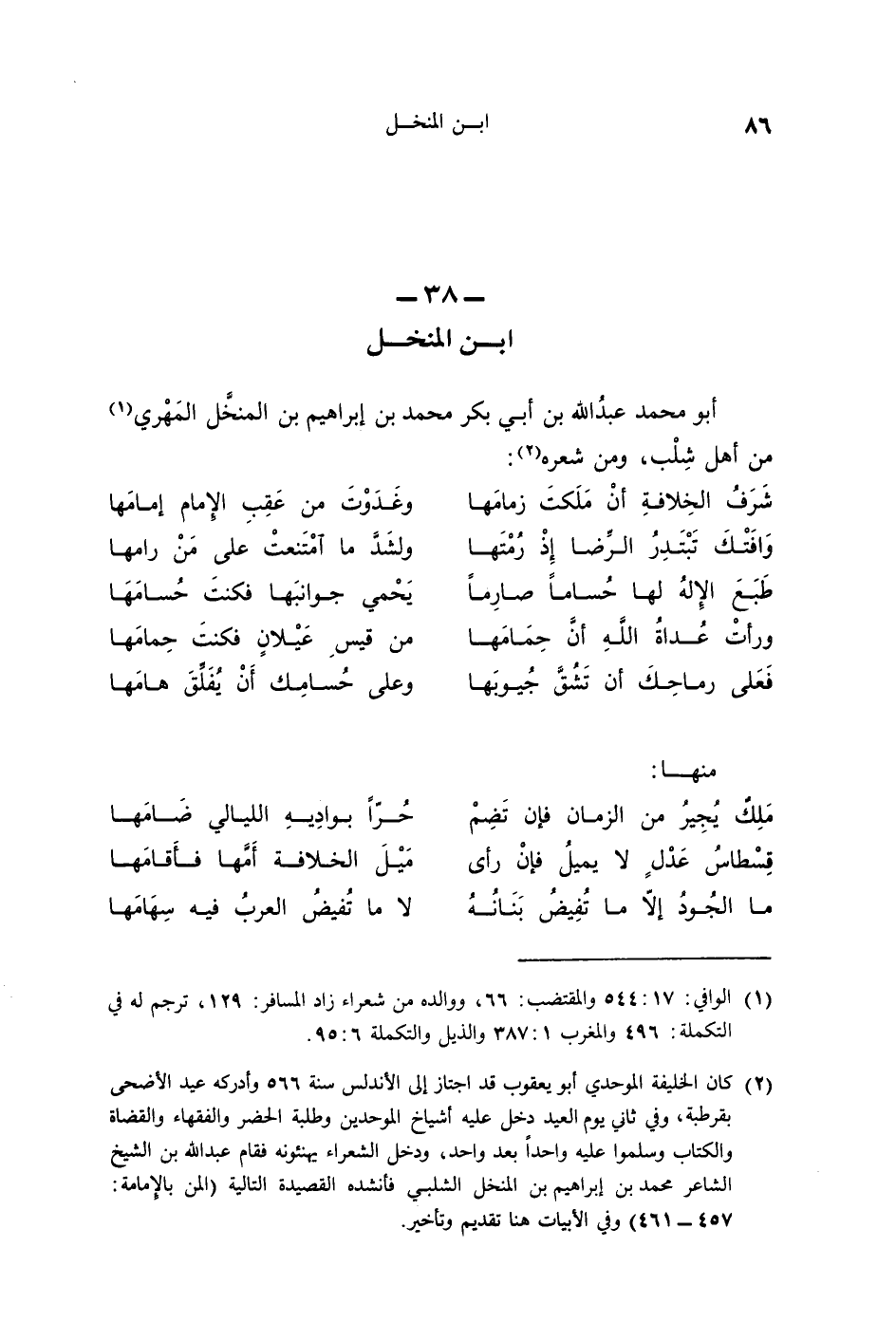 أبو محمد عبد الله بن أبو بكر محمد بن إبراهيم بن المنخَّل المَهْري من أهل شِلْب، ومن شعره: