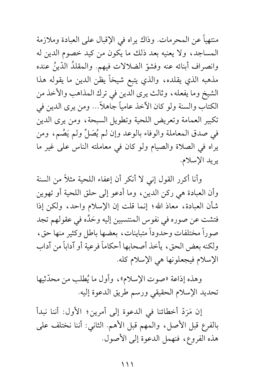 وهذه إذاعة «صوت الإسلام»، وأول ما يُطلب من محدّثيها تحديد الإسلام الحقيقي ورسم طريق الدعوة إليه.