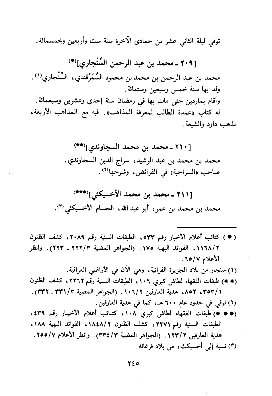 محمد بن عبد الرحمن بن محمد بن محمود السمرقندي، السنجاري.