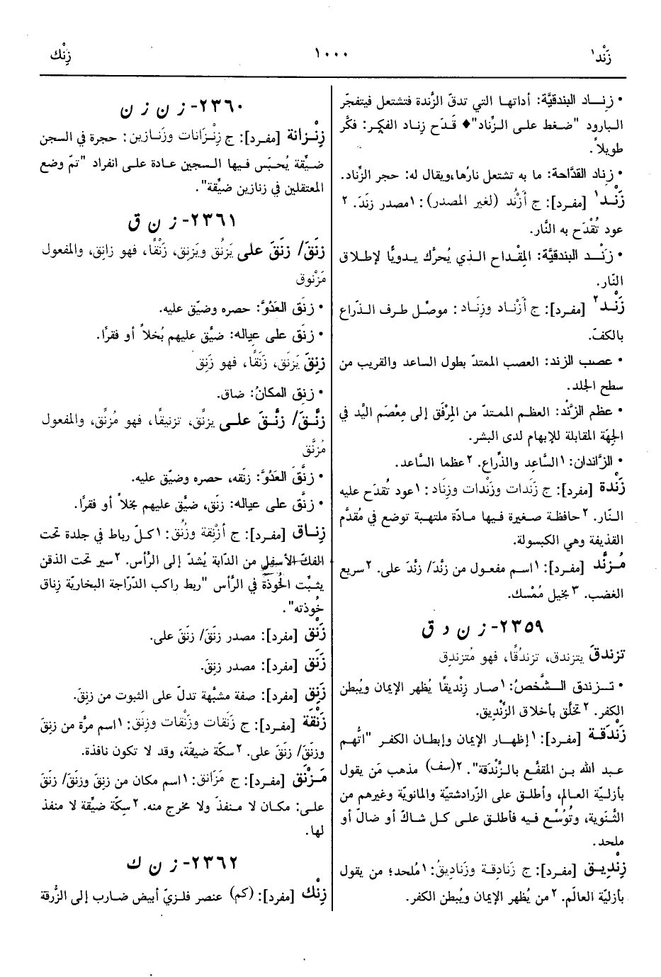 2 - (سف) مذهب مَن يقول بأزليّة العالم، وأطلق على الزّرادشتيّة والمانويّة وغيرهم من الثَّنَوية، وتُوُسِّع فيه فأطلق على كل شاكّ أو ضالّ أو ملحد.