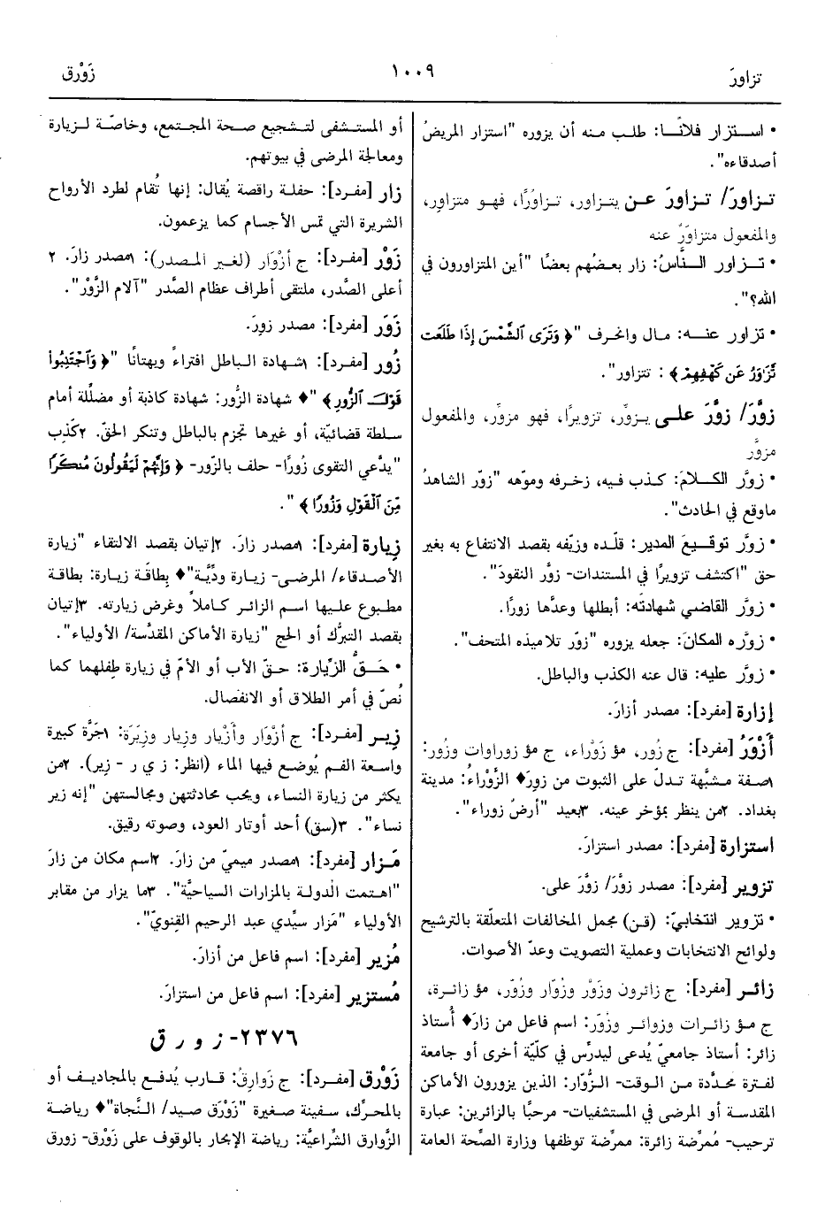 • تزاور عنه: مال وانحرف " {وَتَرَى الشَّمْسَ إِذَا طَلَعَتْ تَزَاوَرُ عَنْ كَهْفِهِمْ}: تتزاور".