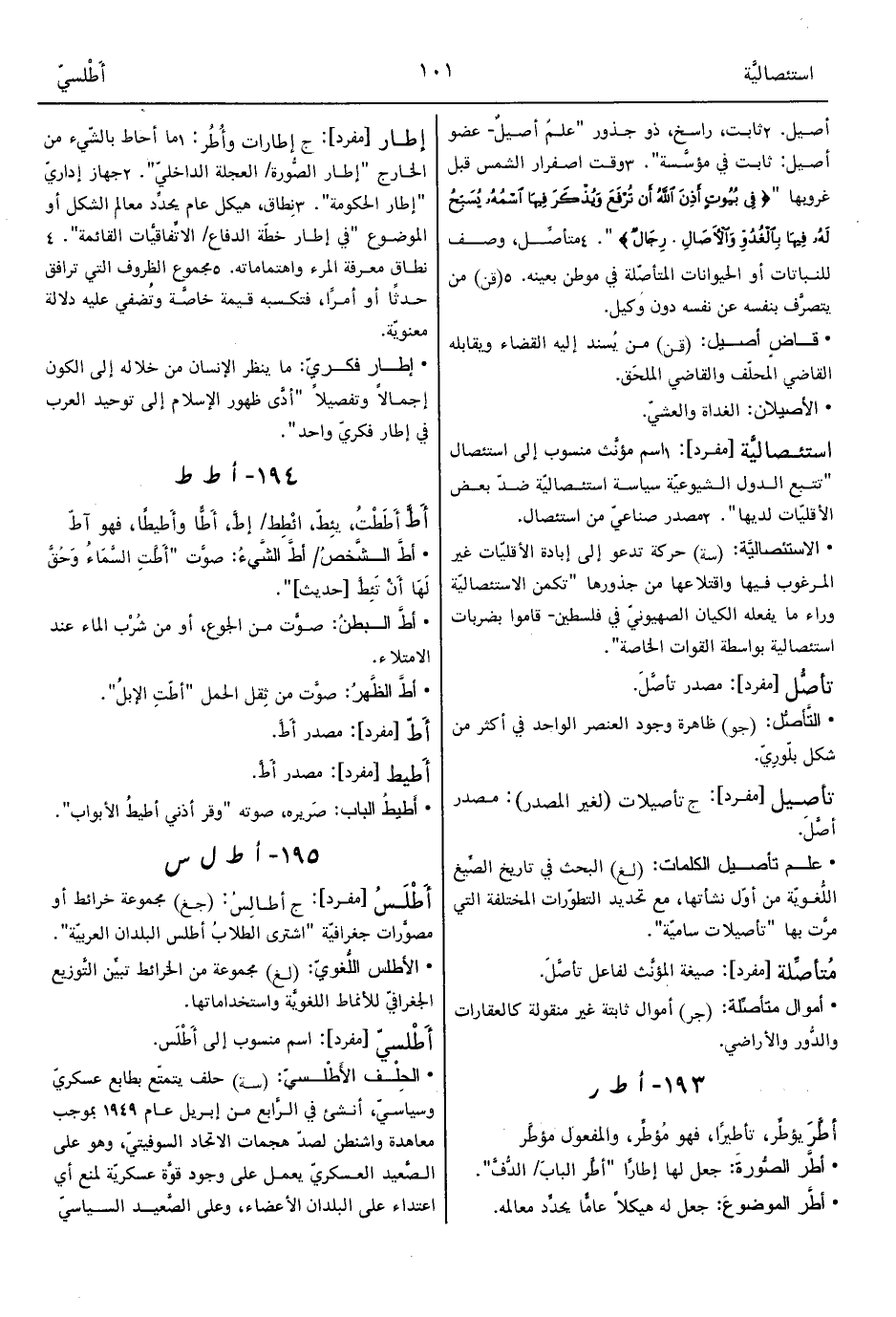 • الأطلس اللُّغويّ: (لغ) مجموعة من الخرائط تبيِّن التَّوزيع الجغرافيّ للأنماط اللغويَّة واستخداماتها.