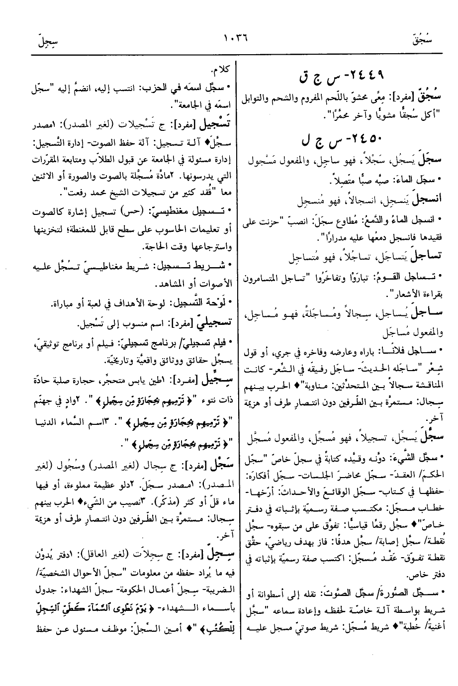 1 - دفتر يُدوَّن فيه ما يُراد حفظه من معلومات "سجلّ الأحوال الشخصيّة/ الضريبة- سِجلّ أعمال الحكومة- سجلّ الشهداء: جدول بأسماء الشهداء- {يَوْمَ نَطْوِي السَّمَاءَ كَطَيِّ السِّجِلِّ لِلْكُتُبِ} " ° أمين السِّجلّ: موظف مسئول عن حفظ