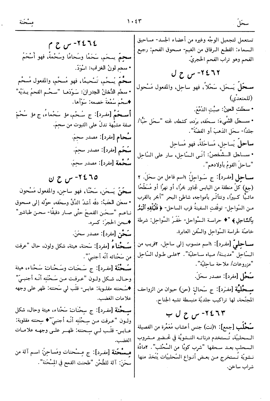 • سحَلتِ العينُ: صبَّتِ الدّمْعَ.