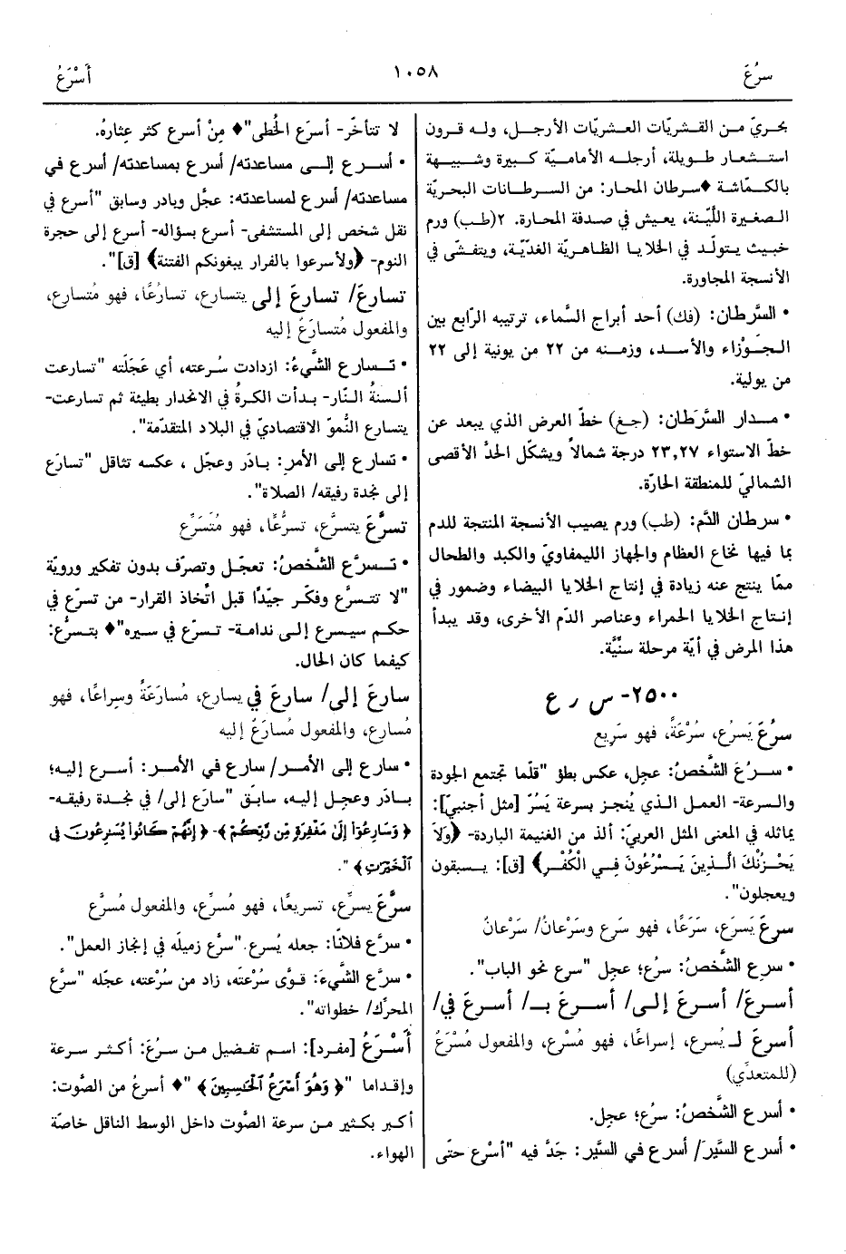 • سارعَ إلى الأمر/ سارعَ في الأمر: أسرع إليه؛ بادَر وعجِل إليه، سابَق "سارَع إلى/ في نجدة رفيقه- {وَسَارِعُوا إِلَى مَغْفِرَةٍ مِنْ رَبِّكُمْ} - {إِنَّهُمْ كَانُوا يُسَارِعُونَ فِي الْخَيْرَاتِ} ".