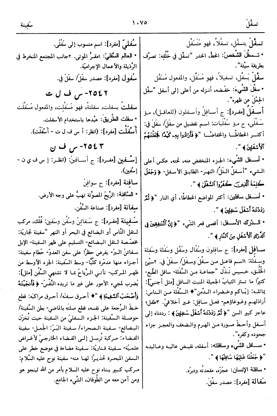 • سافل الشَّيء وسافلته: أسفله، نقيض عاليه وعاليته " {جَعَلْنَا عَالِيَهَا سَافِلَهَا} ".
