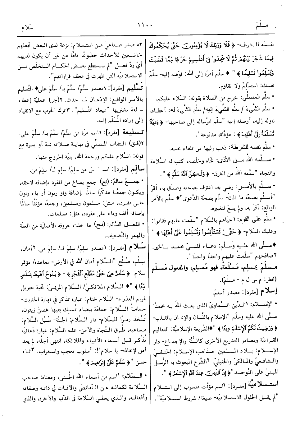 1 - الدِّين السَّماويّ الذي بعث اللهُ به محمدًا صلَّى الله عليه وسلّم "الإسلام باللِّسان والإيمان بالقلب- {وَرَضِيتُ لَكُمُ الإِسْلاَمَ دِينًا} " ° الشَّريعة الإسلاميَّة: التعاليم القرآنيّة ومصادر التشريع الأخرى كالسُّنَّة والإجماع- دار الإسلام: بلاد المسلمين- مذاهب الإسلام: الحنفيّ والشافعيّ والمالكيّ والحنبليّ.