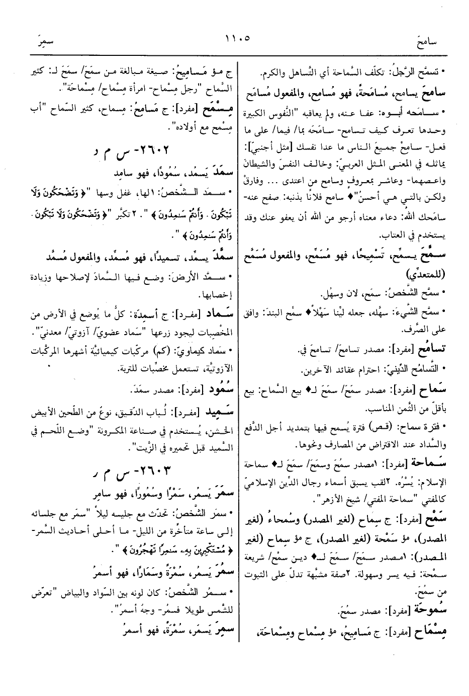 -[1106]- • سمِر الشَّخصُ: سمُر، كان لونه بين السّواد والبياض "لونٌ أسمرُ".