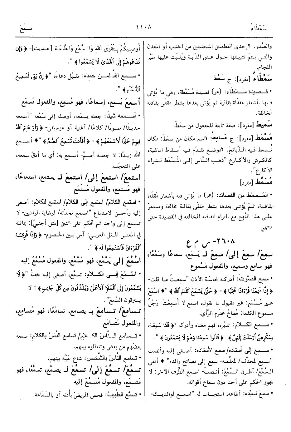 • سمِع الكلامَ: تدبَّره، فهم معناه وأدركه " {فَلَمَّا سَمِعَتْ بِمَكْرِهِنَّ أَرْسَلَتْ إِلَيْهِنَّ} - {قَالُوا سَمِعْنَا وَهُمْ لاَ يَسْمَعُونَ} ".