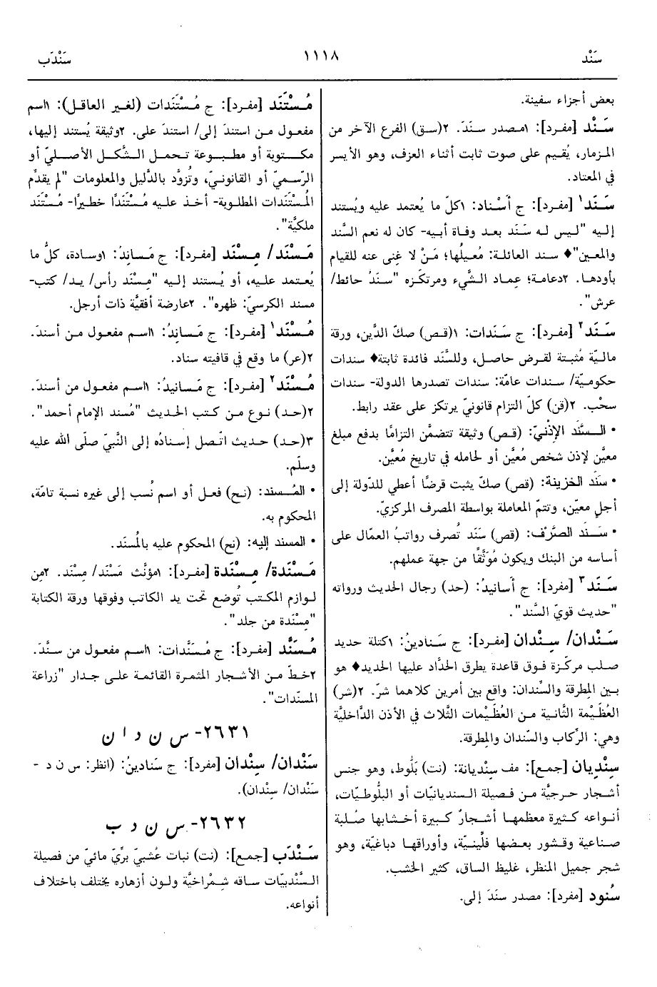 1 - كلّ ما يُعتمد عليه ويُستند إليه "ليس له سَنَد بعد وفاة أبيه- كان له نعم السَّند والمعين" ° سند العائلة: مُعيلُها؛ مَنْ لا غِنى عنه للقيام بأودها.