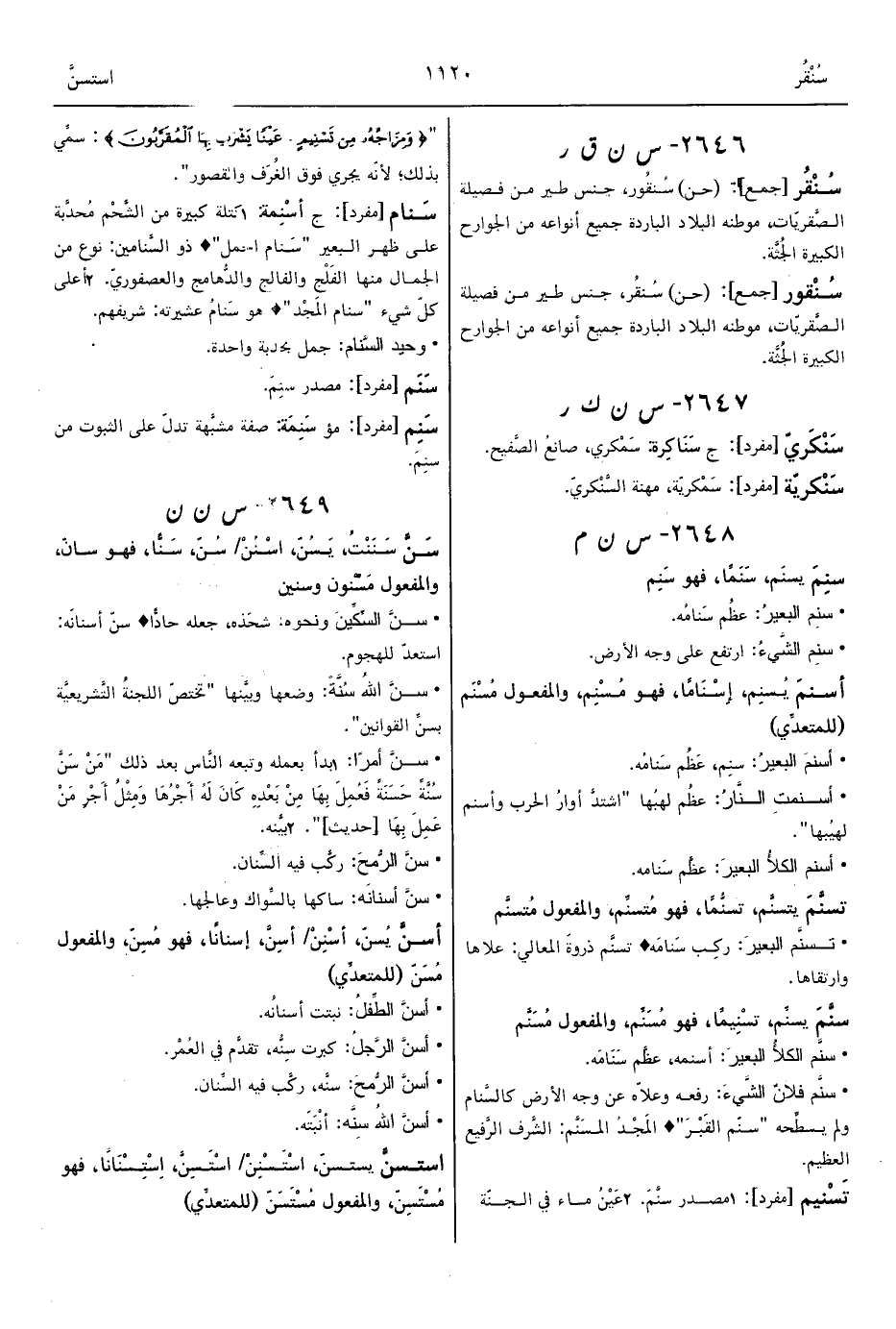 • سنِم البعيرُ: عظُم سَنامُه.
