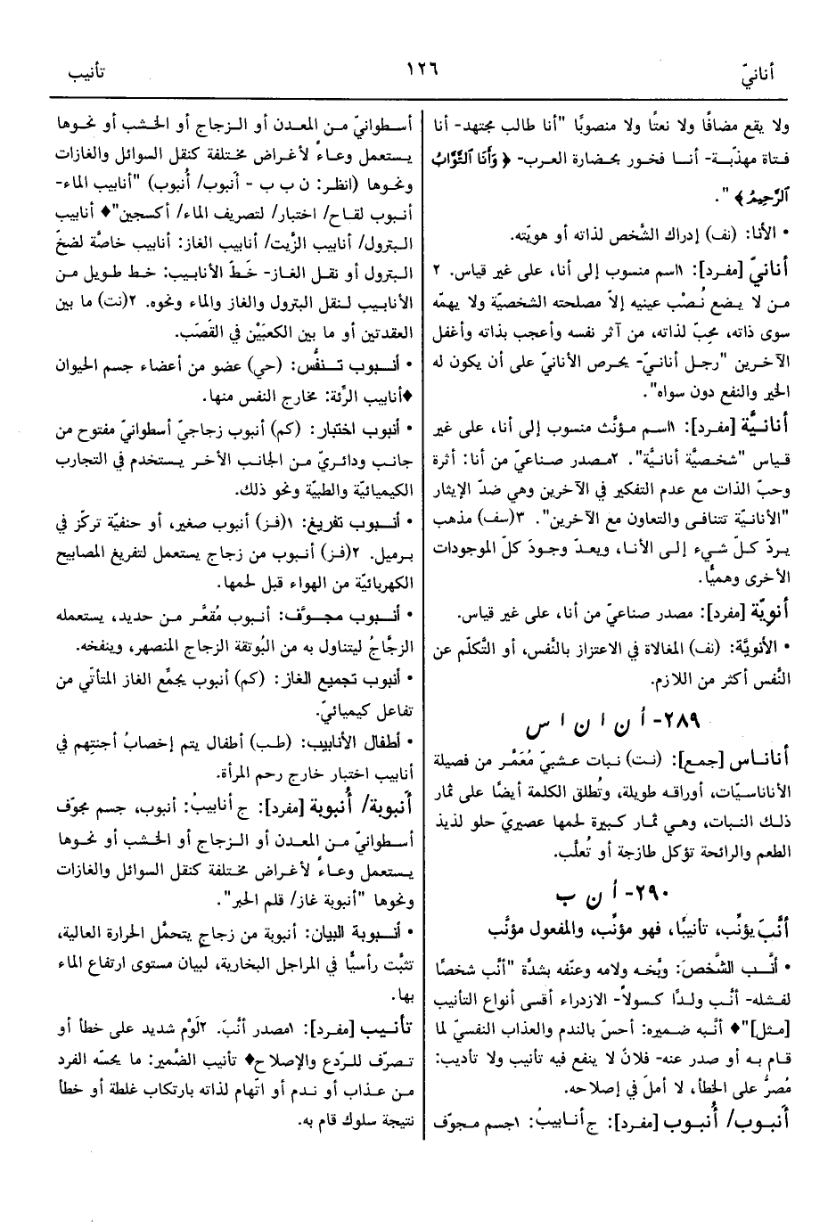 • الأنويَّة: (نف) المغالاة في الاعتزاز بالنَّفس، أو التَّكلّم عن النَّفس أكثر من اللازم.