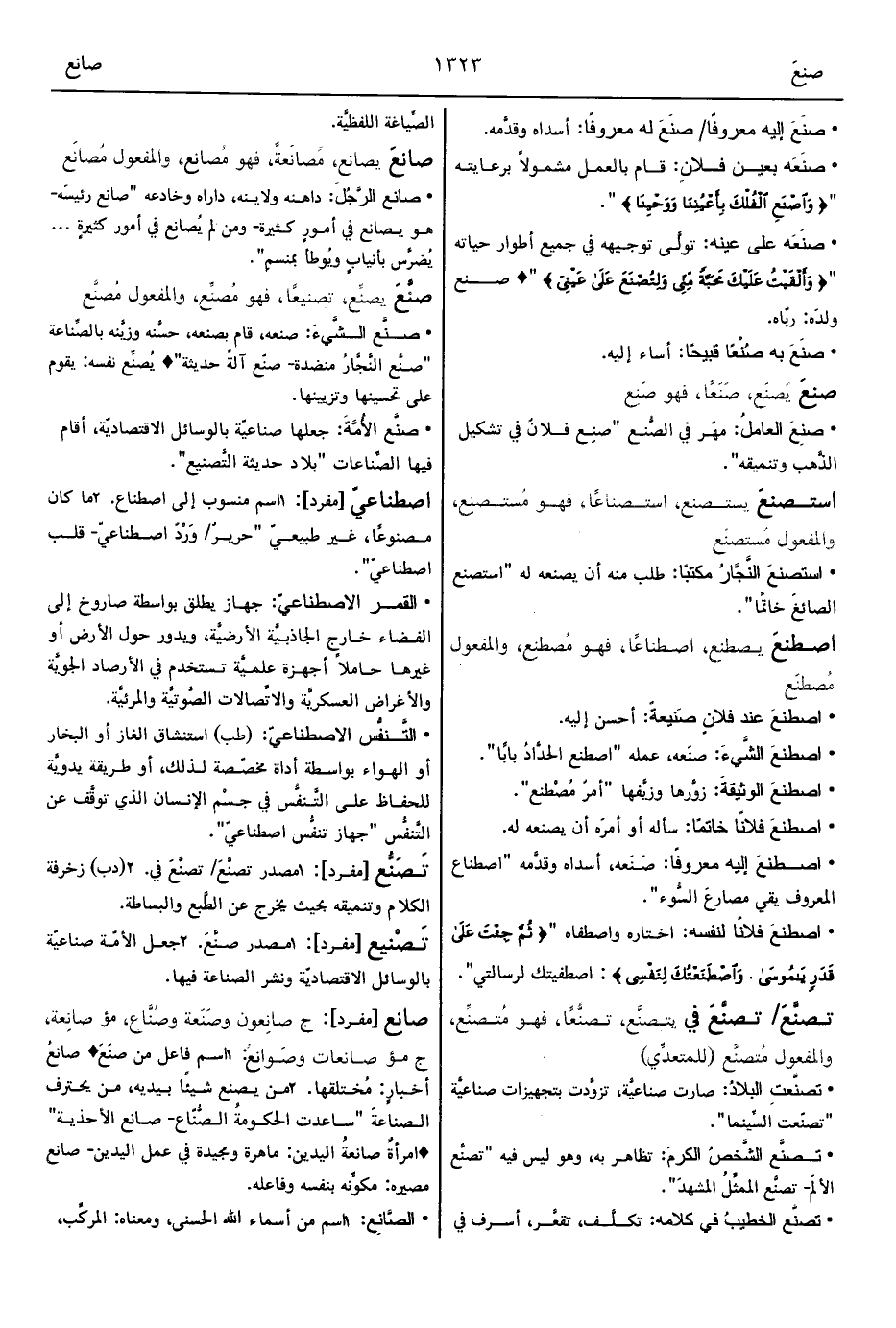 • صنَّع الشَّيءَ: صنعه، قام بصنعه، حسَّنه وزيَّنه بالصِّناعة "صنَّع النَّجَّارُ منضدة- صنّع آلةً حديثة" ° يُصنِّع نفسه: يقوم على تحسينها وتزيينها.