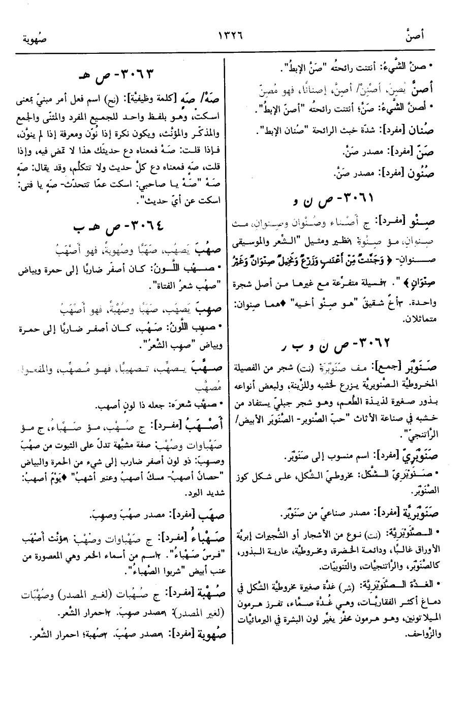 • صهُب اللَّونُ: كان أصفَر ضاربًا إلى حمرة وبياض "صهُب شعرُ الفتاة".