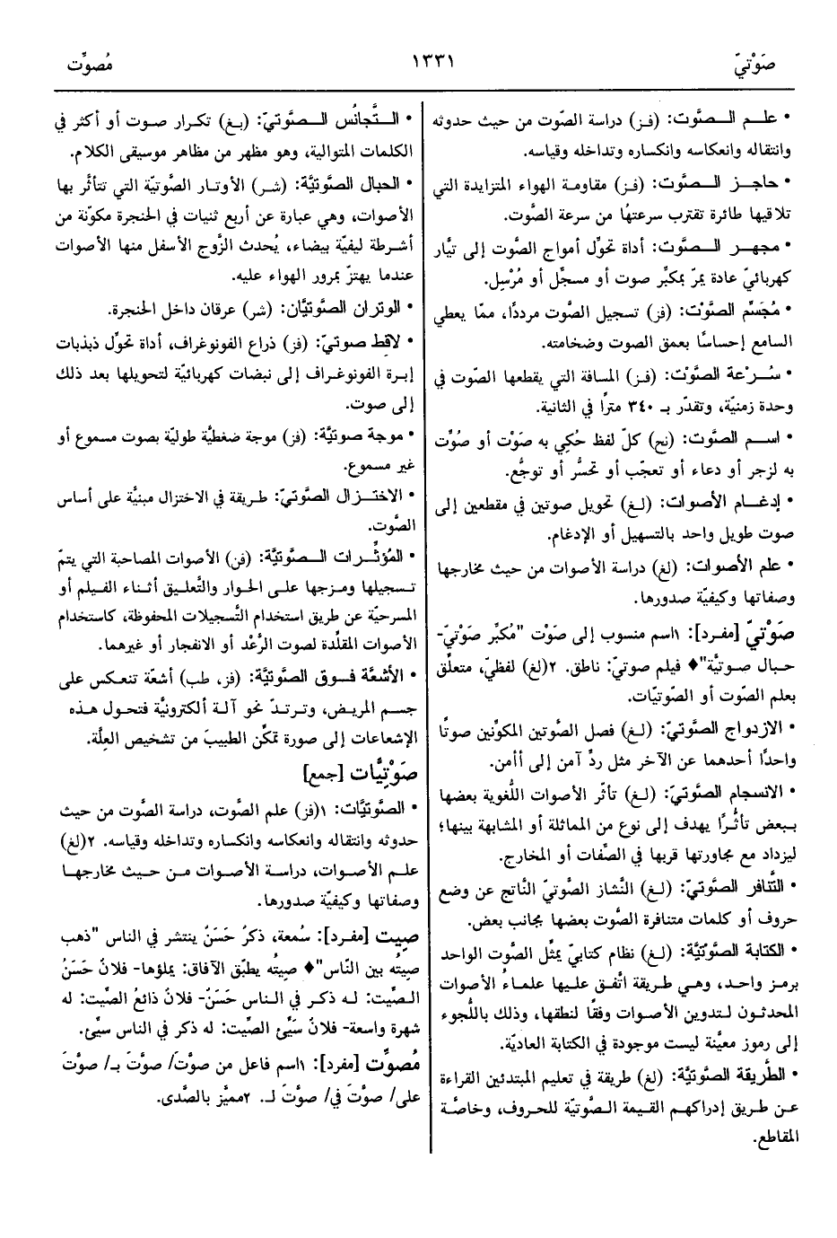 • التَّنافر الصَّوتيّ: (لغ) النَّشاز الصَّوتيّ النَّاتج عن وضع حروف أو كلمات متنافرة الصَّوت بعضها بجانب بعض.
