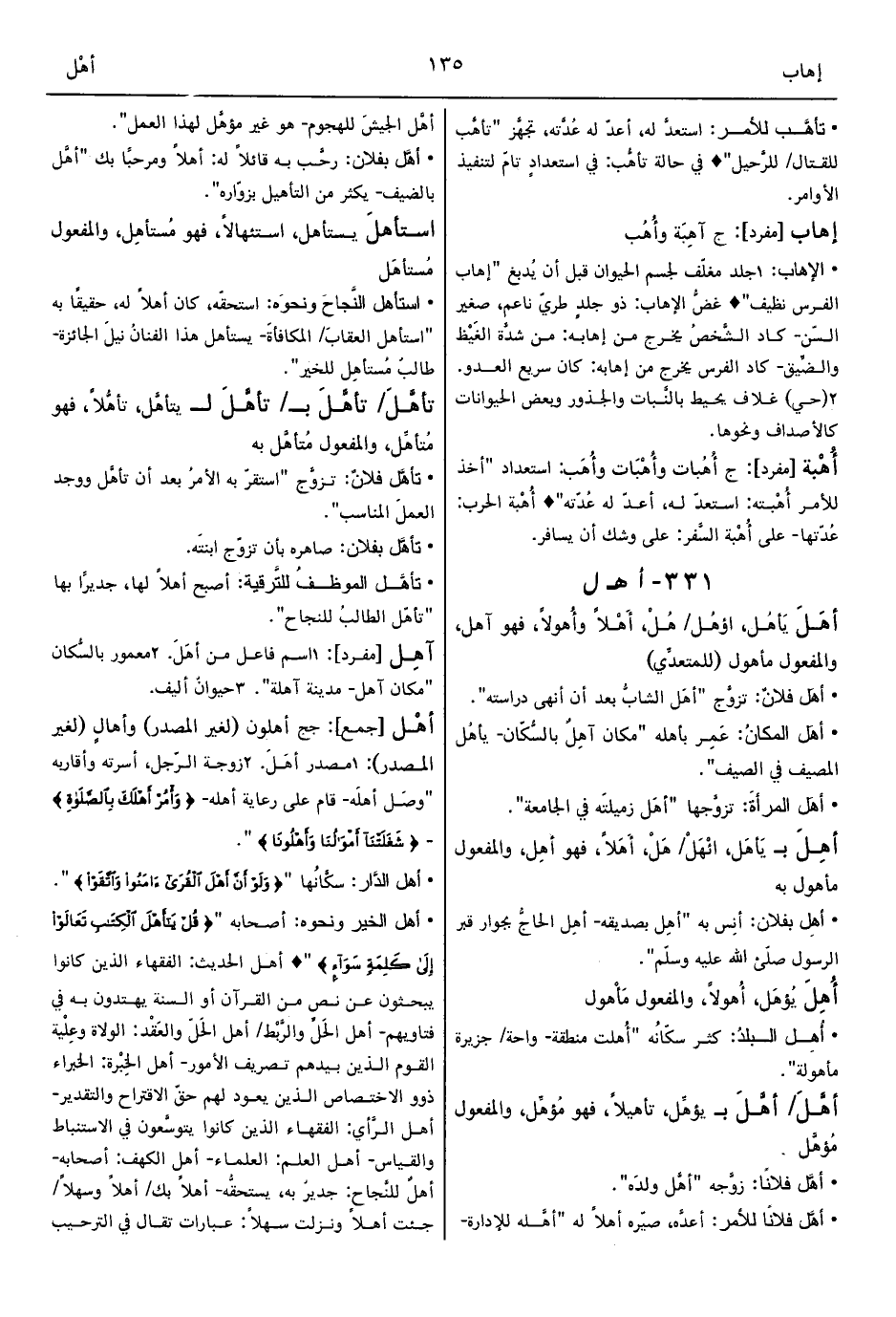 • أهِل بفلان: أنِس به "أهِل بصديقه- أهِل الحاجُّ بجوار قبر الرسول صلّى الله عليه وسلّم".