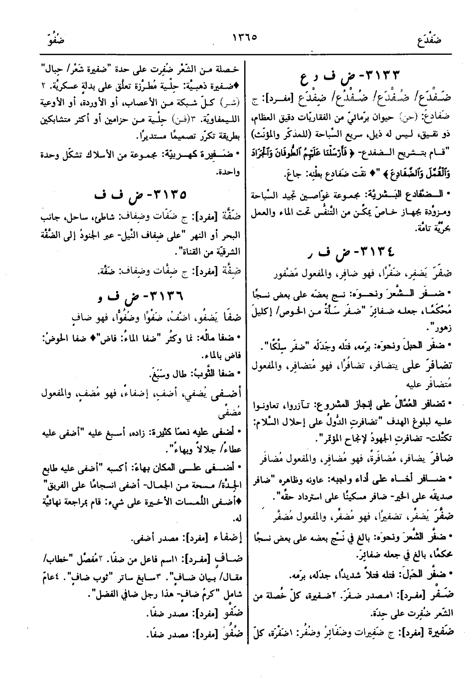1 - ضَفْر، كلّ خصلة من الشّعْر ضُفِرت على حدة "ضفيرة شَعْر/ حِبال" ° ضفيرة ذهبيَّة: حِلْية مُطرَّزة تعلَّق على بدلةٍ عسكريَّة.