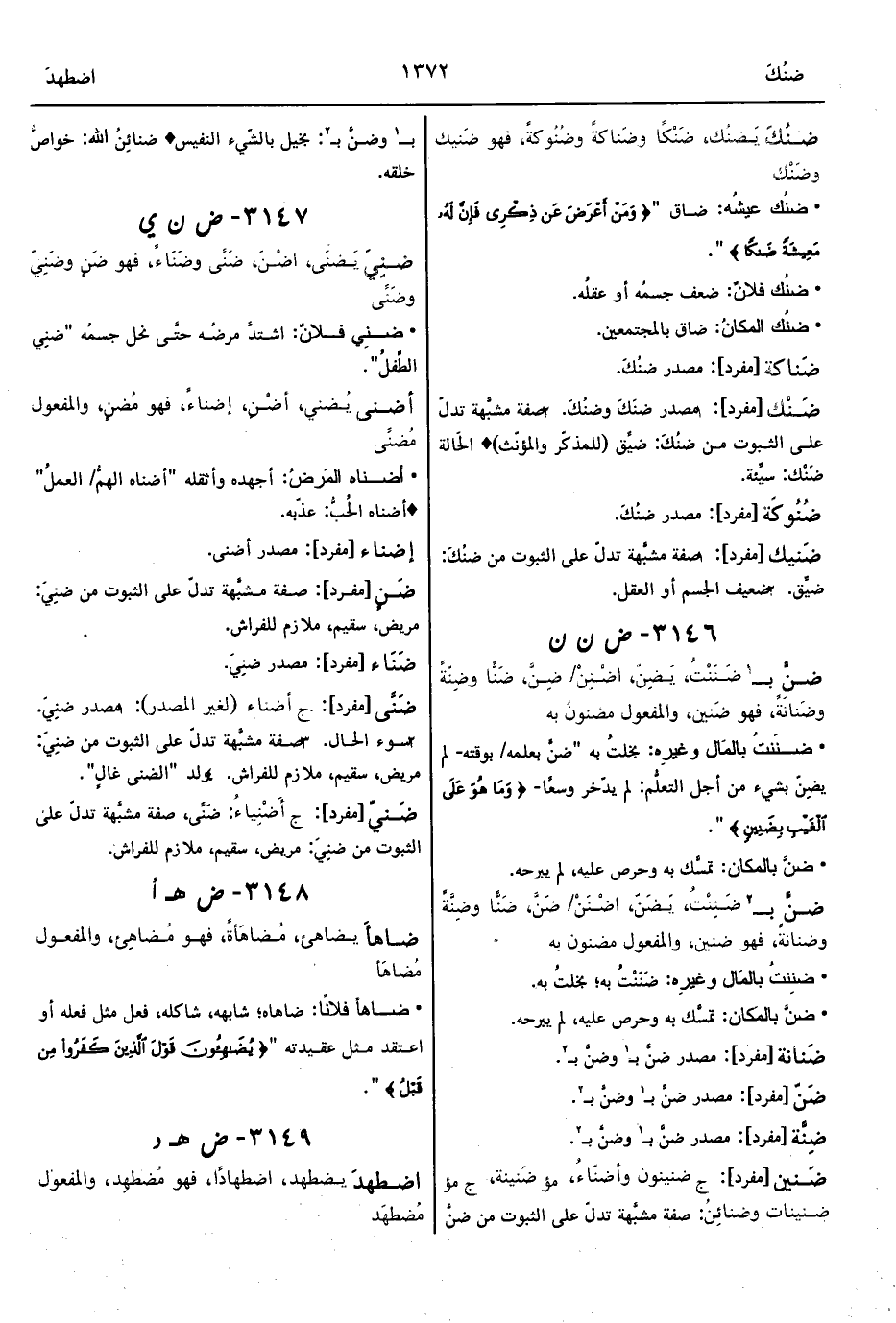 3 - صفة مشبَّهة تدلّ على الثبوت من ضنِيَ: مريض، سقيم، ملازم للفراش.
