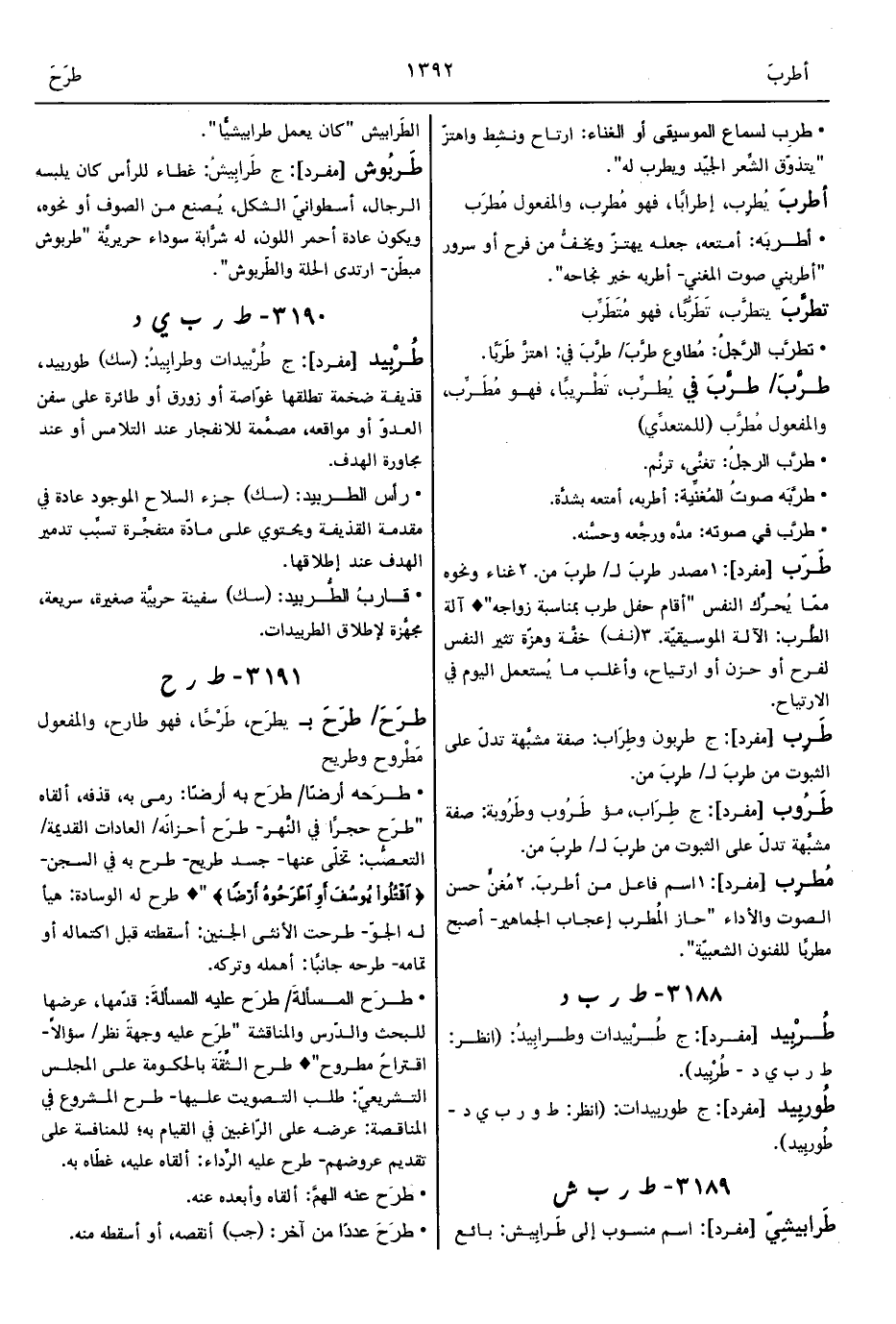 • تطرَّب الرَّجلُ: مُطاوع طرَّبَ/ طرَّبَ في: اهتزَّ طَرَبًا.