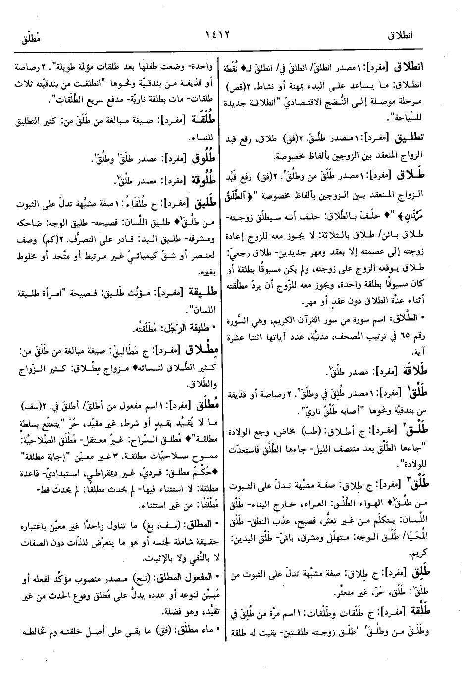 1 - مصدر طُلِقَ في وطلَقَ2.