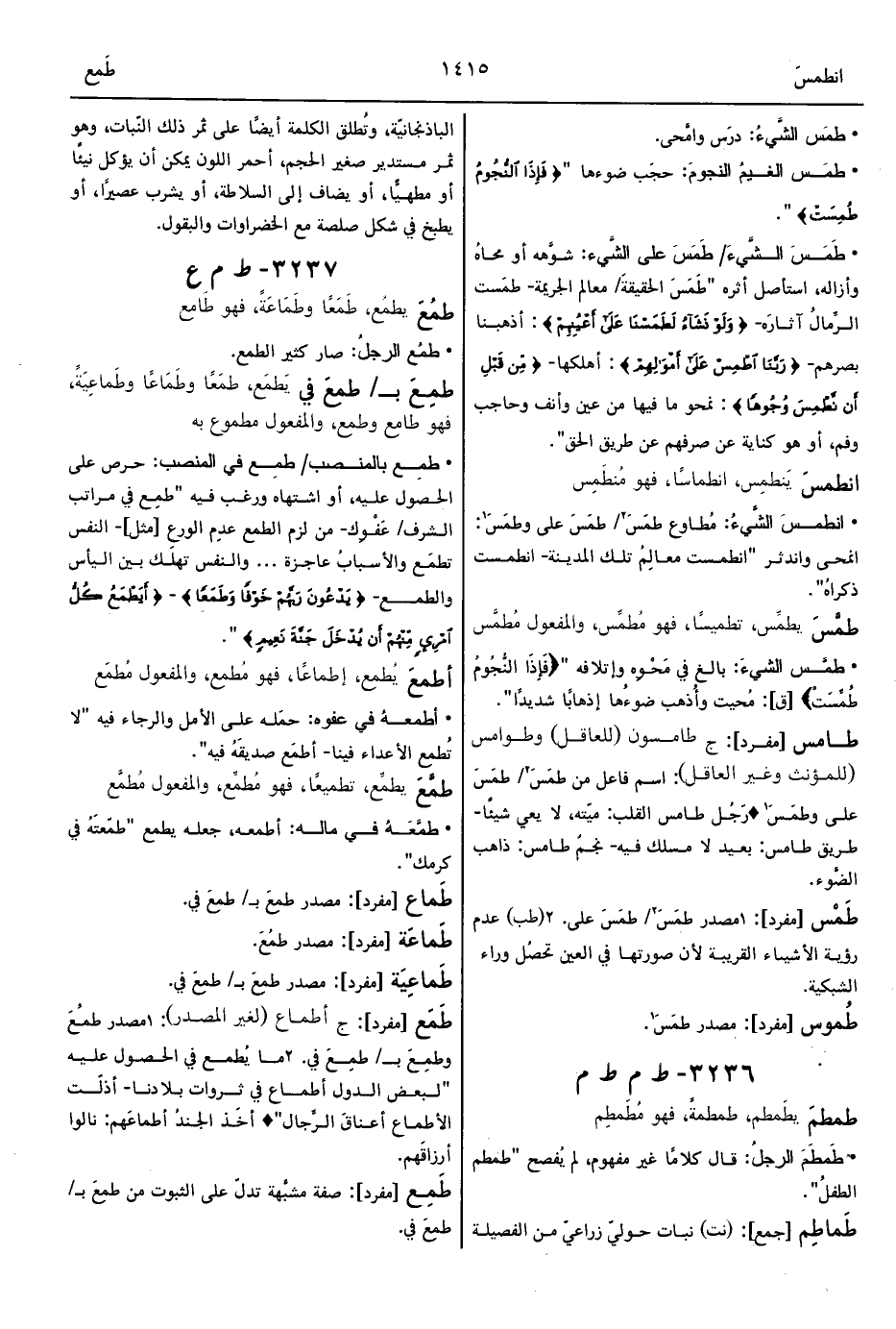 1 - مصدر طمُعَ وطمِعَ بـ/ طمِعَ في.