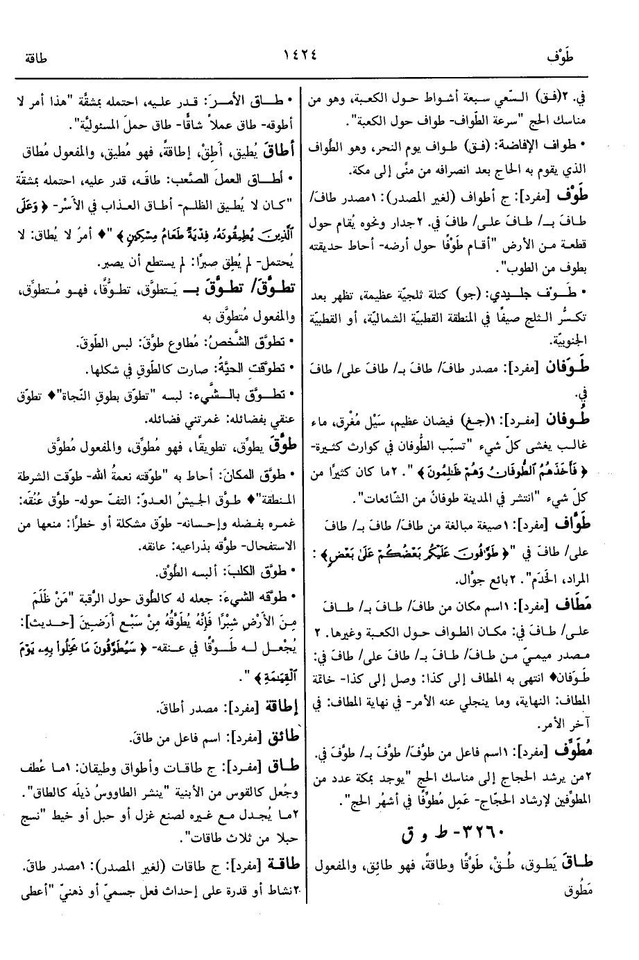 • طاق الأمرَ: قدر عليه، احتمله بمشقَّة "هذا أمر لا أطوقه- طاق عملاً شاقًّا- طاق حملَ المسئوليَّة".
