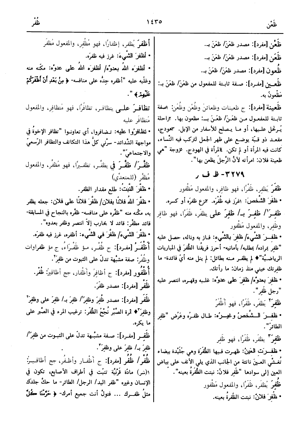 • ظفِرَ الشَّيءَ/ ظفِرَ بالشَّيءِ: فاز به وناله، حصل عليه "ظفِر بمراده/ بمطلبه/ بأمانيه- أحرز فريقُنا الظَّفرَ في المباريات الرياضيَّة" ° لم يظفر منه بطائل: لم ينل منه أيّ فائدة- ما ظفِرتك عيني منذ زمان: ما رأتك.