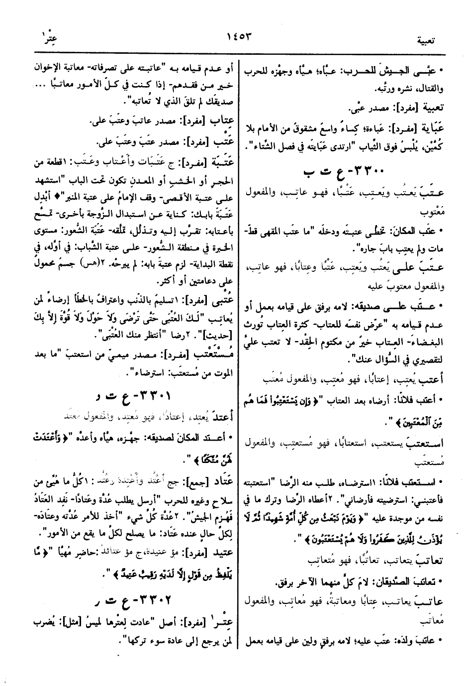 • أعتب فلانًا: أرضاه بعد العتاب " {وَإِنْ يَسْتَعْتِبُوا فَمَا هُمْ مِنَ الْمُعْتَبِينَ} ".